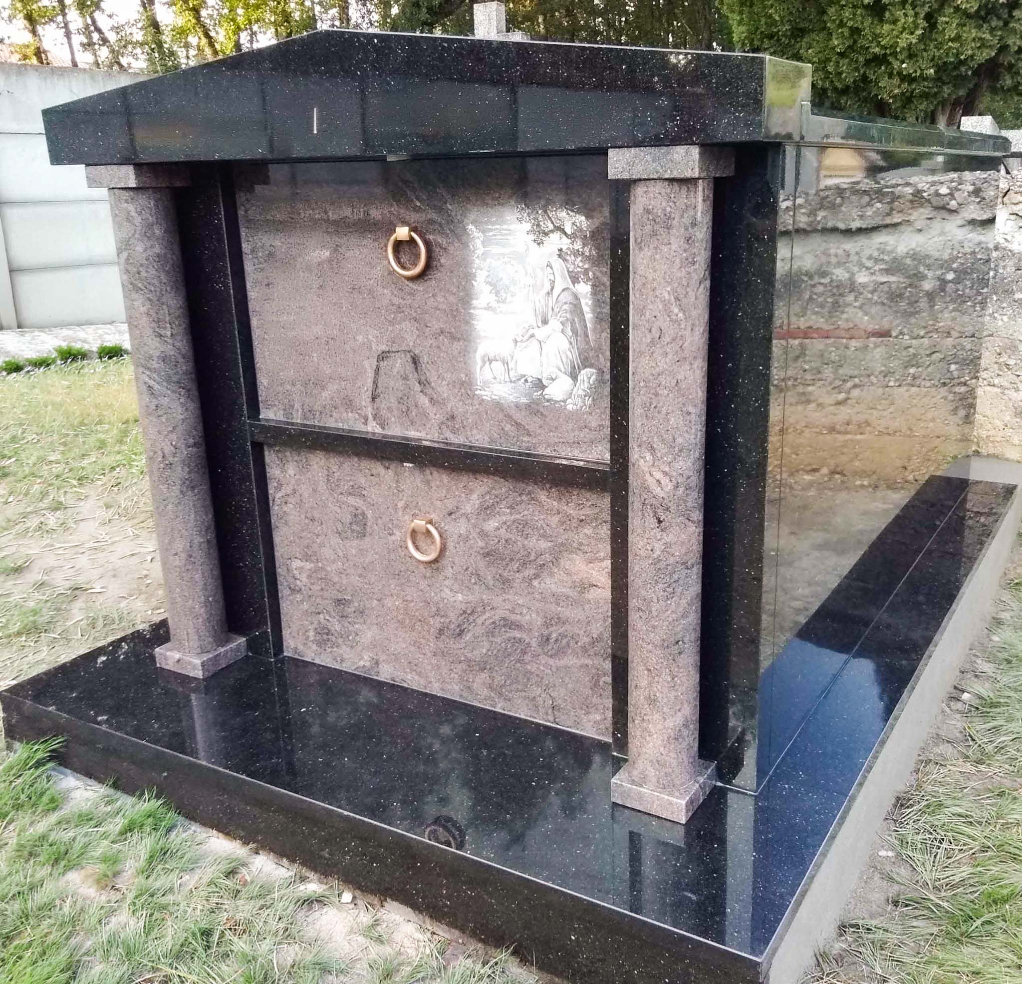 Ce type de monument permet une ouverture plus facile que pour une pierre tombale et procure également une à deux places supplémentaires dans sa partie hors sol, derrière la porte.