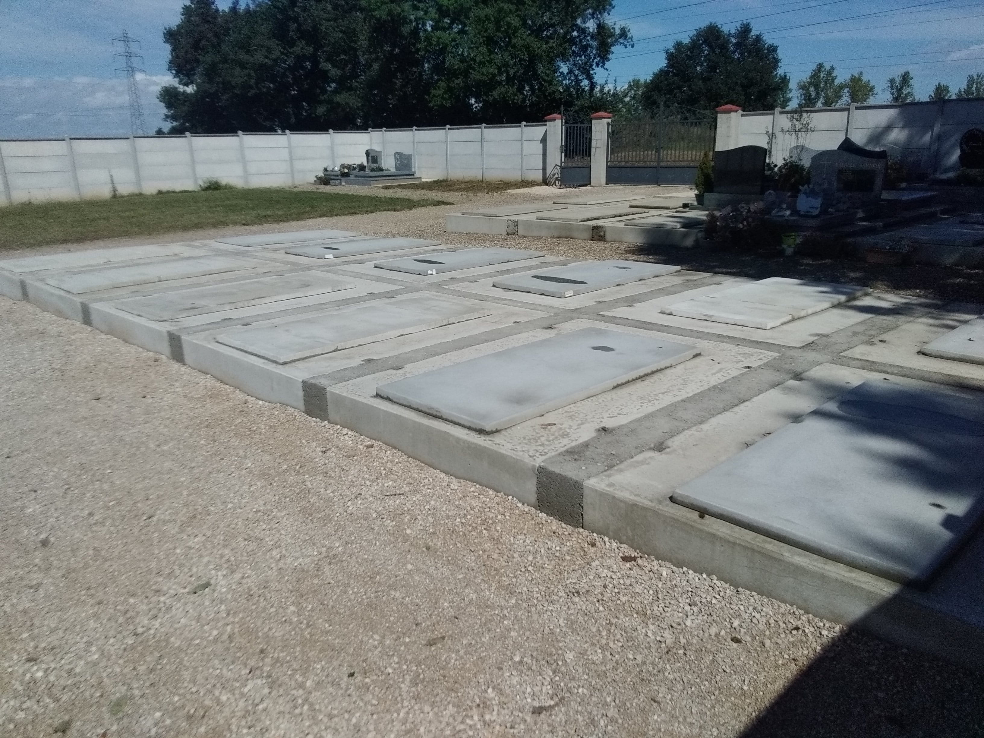- Caveau double cuve: même principe, avec la possibilité d’installer deux cercueils côte à côte sur un même niveau.